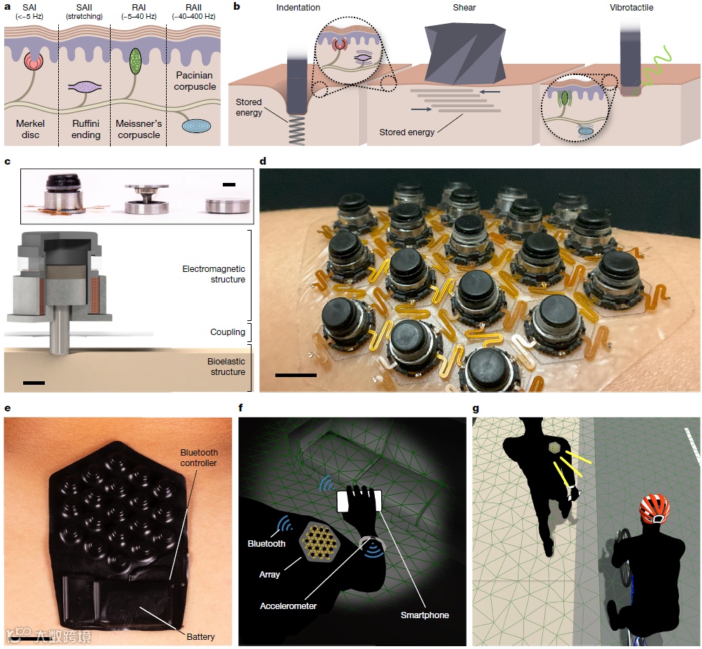 人体皮肤具有丰富的传入神经元。在与皮肤的物理相互作用过程中,皮肤机械感受器会引起这些神经元的活动,并作为识别和定位物体的基础。生物电子学领域一个令人兴奋的最新方向是开发能够以快速、可编程的方式使用这些传入神经元的系统。与其他周围神经相比,体感传入神经元可以通过与皮肤表面的直接相互作用选择性地、非侵入性地激活。正如虚拟现实和增强现实系统的出现所表明的那样,快速、可编程地操纵人类感官知觉的能力在社交媒体、游戏和娱乐领域有着广泛的应用。在治疗性生物医学系统中也存在特别引人注目的机会,这些系统应用这些体感界面来替代和增强缺失的感官能力。