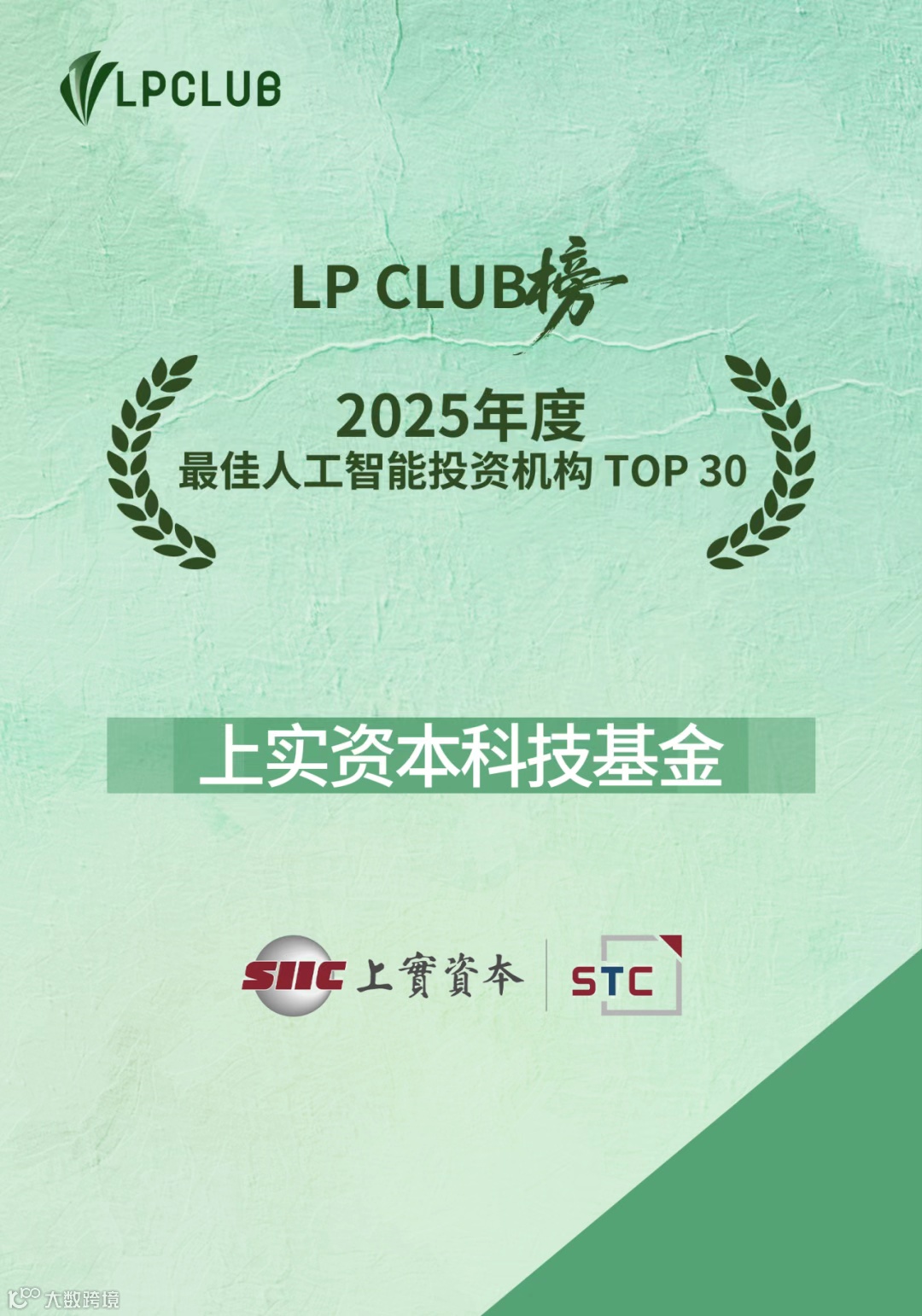 1月15日,LP CLUB 榜・2025 年度榜单评选结果正式重磅发布。上实资本科技基金凭借在科技领域的专业投资能力和市场影响力,与红杉中国、绿洲资本等共同荣登“2025年度最佳人工智能投资机构 TOP 30”。