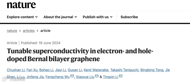 近日,上海交通大学物理与天文学院李听昕课题组、李政道研究所刘晓雪课题组在Nature上发表题为“Tunable superconductivity in electron- and hole-doped Bernal bilayer graphene”的研究论文。该项研究首次在单晶石墨烯中观测到电子掺杂情况的超导电性,这对于理解晶体石墨烯及转角石墨烯系统的超导机理,设计制备基于石墨烯系统的高质量新型超导量子器件等具有重要意义。