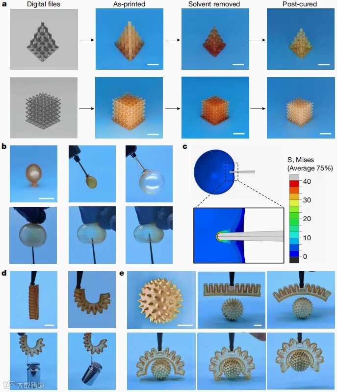 “3D打印不一定要以牺牲机械性能为代价。” 谢涛教授认为,在这项研究中,他们展示了通过动态共价网络的设计来解决这对矛盾的方法,开拓了光固化打印强韧材料分子/网络设计新思路,克服了3D打印的大规模应用的重要障碍。同时,研究团队认为聚合物动态共价网络的设计理念,还可以用于其他材料的改进,为材料设计创造更为丰富的想象空间。