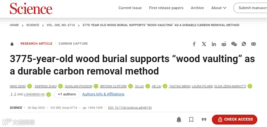 引用:Ning Zeng et al.,3775-year-old wood burial supports “wood vaulting” as a durable carbon removal method.Science385,1454-1459(2024).