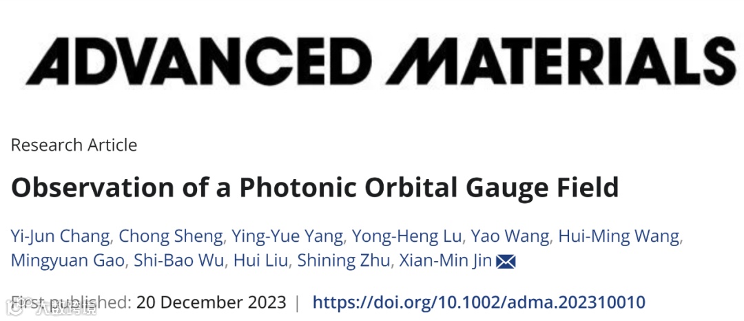 近日,上海交通大学无锡光子芯片研究院(CHIPX)、「图灵量子」、上海交大集成量子信息技术技术研究中心(IQIT)、固体微结构物理国家重点实验室和人工微结构科学与技术协同创新中心合作发表创新成果。上海交大金贤敏团队和南京大学盛冲团队在《先进材料》(Advanced Materials)上以「Observation of a Photonic Orbital Gauge Field」为题发表最新研究成果,并作为back cover进行封面报道,其提出了一种轨道角动量维度的轨道规范场,并在人工光波导晶格中观察到了光子轨道规范场对多维轨道涡旋光的束缚以及结合矢量势场而导致的手性传输过程。文章中提出的轨道规范场具有广泛的适用性,为光子集成器件开拓了具有高容量的传输信道。