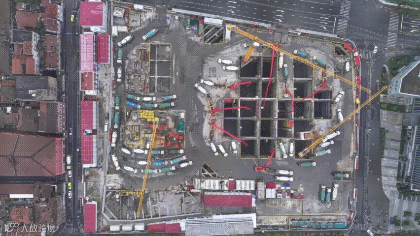 本次浇筑的底板厚度普遍达到5.5米,将和其下方的655根主楼桩基,一起承载“浦西第一高楼”480米高主楼的负载。浇筑施工历时近40个小时,以智慧工地管理平台为载体,以机器人等数字化新装备为手段,一次性连续浇捣完成,应用施工安全管控平台提供风险预警,有效保障基坑施工安全和周边地铁安全,提升了施工效率和全流程管理水平。