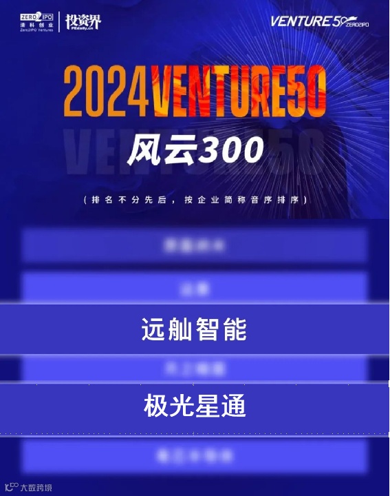 远舢智能、极光星通荣登投资界“2024Venture50风云榜”