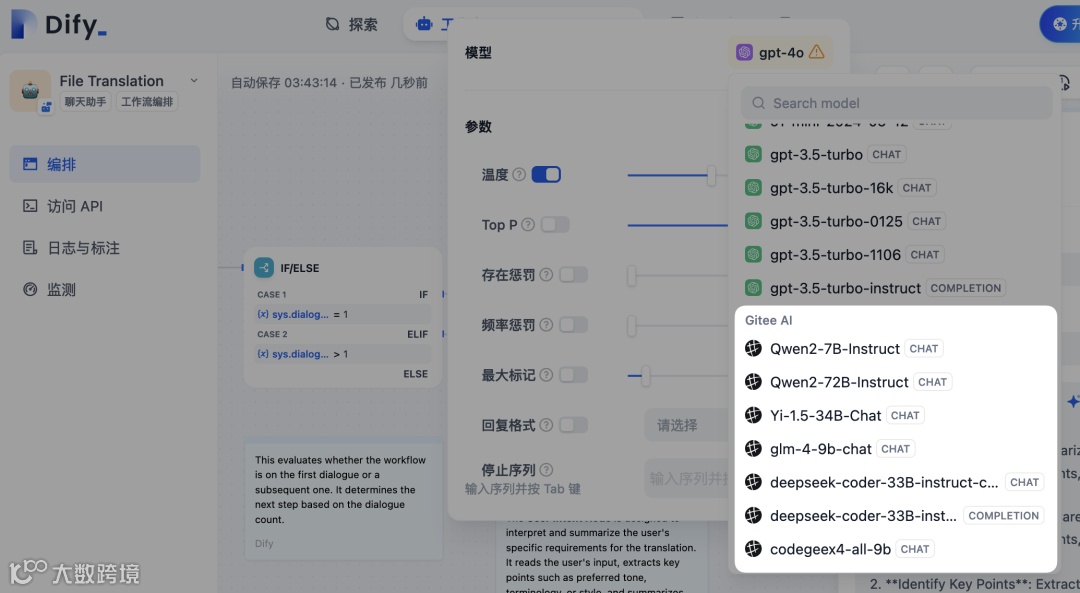 至此,开发者便可以在 Dify 的应用编排中调用来自 Gitee AI 的模型了。