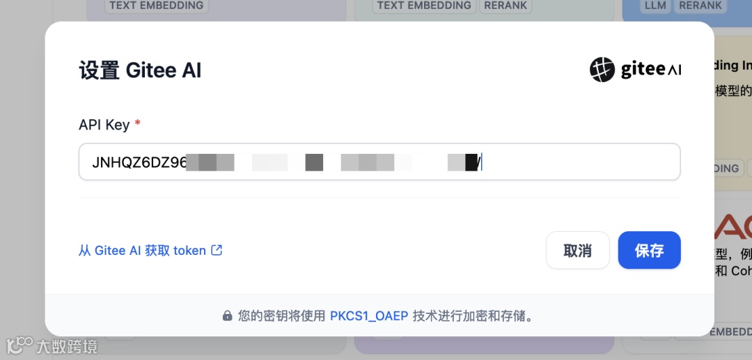 选择 Gitee AI 中的设置,填入此前复制的访问令牌,点击保存即可。