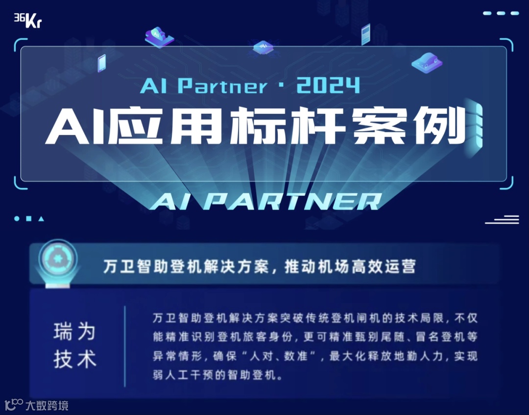 上周,36氪年度重磅榜单“AI Partner·2024 AI应用标杆案例”发布,瑞为技术推出的万卫智助登机方案作为唯一智能出行方案入围。