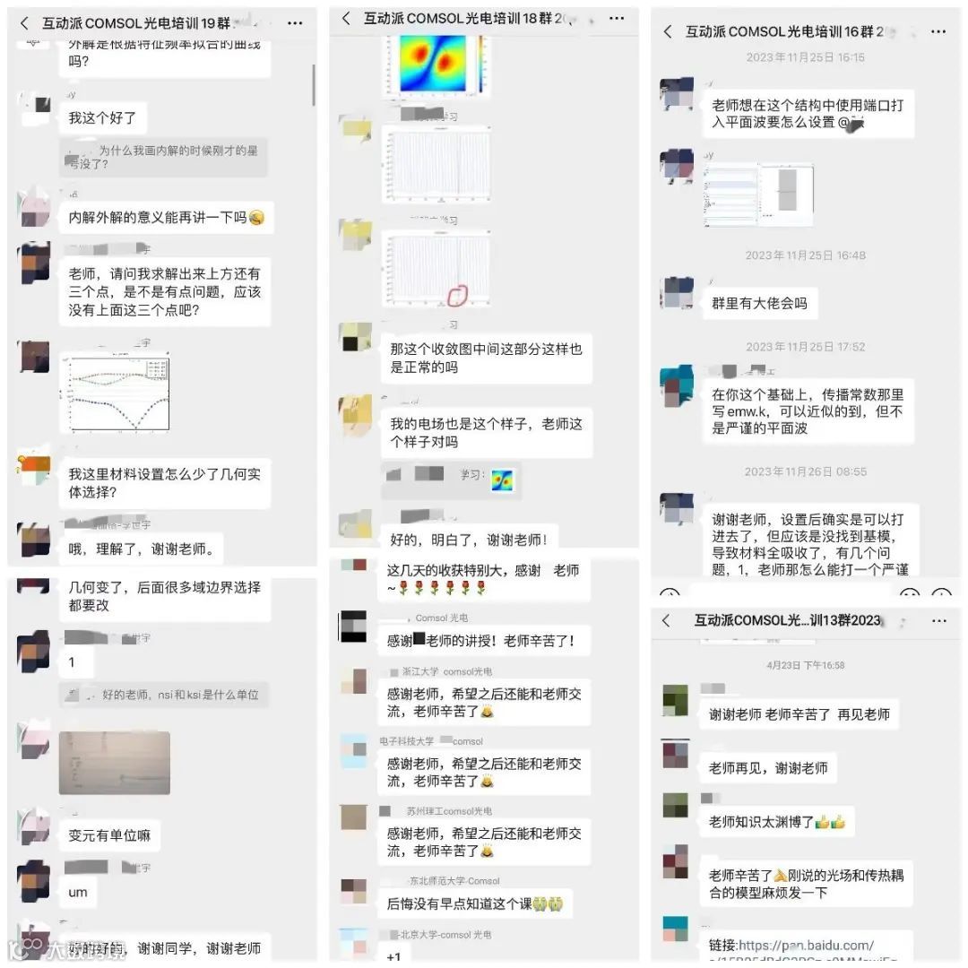 4. 采用线上实训、课堂上连麦答疑、课后提供无限次回放视频,发送全部案例模型文件,建立永不解散的课程群,在班级群内可以和相同领域内的老师同学互动交流问题。