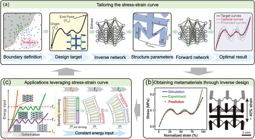 Z. Chai, Z. Zong, H. Yong, et al. Tailoring Stress‐strain Curves of Flexible Snapping Mechanical Metamaterial for On‐demand Mechanical Responses via Data‐driven Inverse Design[J]. Advanced Materials, 2024.https://doi.org/10.1002/adma.202404369