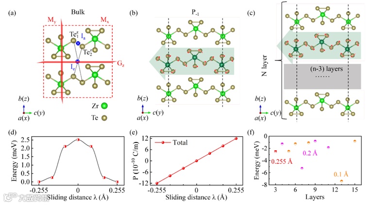 ZrTe5作为一种多功能拓扑材料,因其具有独特的量子现象而受到广泛关注。先前的理论和实验证明,ZrTe5具有巨大的电阻率异常、大反常霍尔效应(AHE)、三维量子霍尔效应、手性磁效应、奇异的热电响应以及由温度、应变、光和Zeeman场等外部刺激驱动的多种拓扑相变。另一方面,维数的降低为材料带来了体块所不具备的更多新奇的性质。例如,在少层ZrTe5中出现了大间隙量子自旋霍尔效应,以及巨大的光学和电学各向异性,这使得少层ZrTe5可以应用于量子器件中。更重要的是,范德华(vdW)层状结构的准二维薄膜拥有不同的反演对称性破缺机制,导致了层间滑移铁电性、可电切换的非线性反常霍尔效应、以及动力学磁电效应(KME)的出现。最近,在ZrTe5中观察到巨大的磁手性各向异性、非线性反常霍尔效应(NAHE)和圆偏振光电流都要求缺乏反演对称性,这引发了关于ZrTe5反演非对称相的确切晶格结构与晶体对称性的激烈讨论。