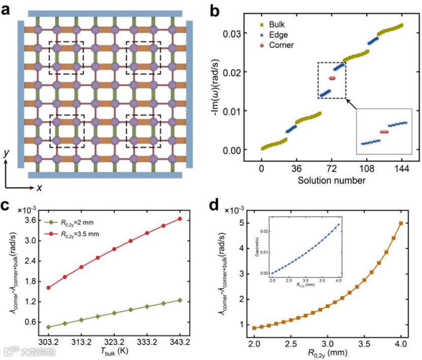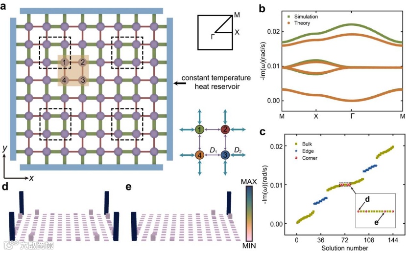 近日,复旦大学物理学系/应用表面物理国家重点实验室黄吉平教授课题组与浙江大学信息与电子工程学院李鹰教授课题组合作,在纯热扩散系统中实现了高阶拓扑绝缘体,同时其角态嵌在体态之内而不是位于能隙之内。相关成果以“Higher-Order Topological In-Bulk Corner State in Pure Diffusion Systems”为题发表于《Physical Review Letters》。复旦大学黄吉平教授与浙江大学李鹰教授为论文的共同通讯作者,复旦大学博士生刘周费与浙江大学博士后曹培超博士为论文的共同第一作者,合作者还包括中国工程物理研究院研究生院须留钧研究员和新加坡国立大学许国强博士。另外,该工作还得到了陶瑞宝院士的大力支持与鼓励。