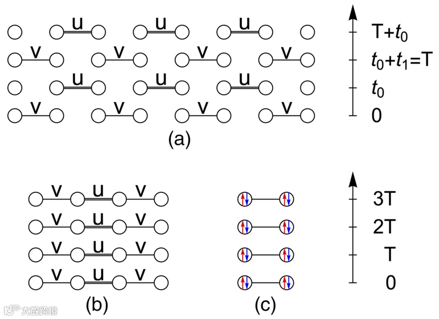 近日,爱荷华州立大学的Thomas Iadecola, Srimoyee Sen, Lars Sivertsen在特定(1+1)维Floquet绝缘体模型中确定了倍频模和π 模相关。展示了自旋无关复费米子的连续时间Floquet模型的拟能谱可以直接映射到具有时间独立哈密顿量的离散时间晶格费米子的谱上。这种离散时间理论的晶格间距等于Floquet系统的驱动时间周期T。通过观察到Dirac方程采用了相应费米子哈密顿量的薛定谔方程形式,映射变得更加容易。晶格费米子模型可以采取SSH模型的形式,其空间晶格位点数量为Floquet模型的一半,或者是具有四分之一位点数的Wilson-Dirac模型。此外,通过适当选择映射解,Floquet和晶格模型的相图是匹配的。特别是,Floquet模型的拓扑相,在开边界条件下展示出局域的零模和π模式,与相关的晶格哈密顿量的拓扑相相符,其中π模式显示为零模的倍增。相关内容发表于《PHYSICAL REVIEW LETTERS》上。(金梦成)