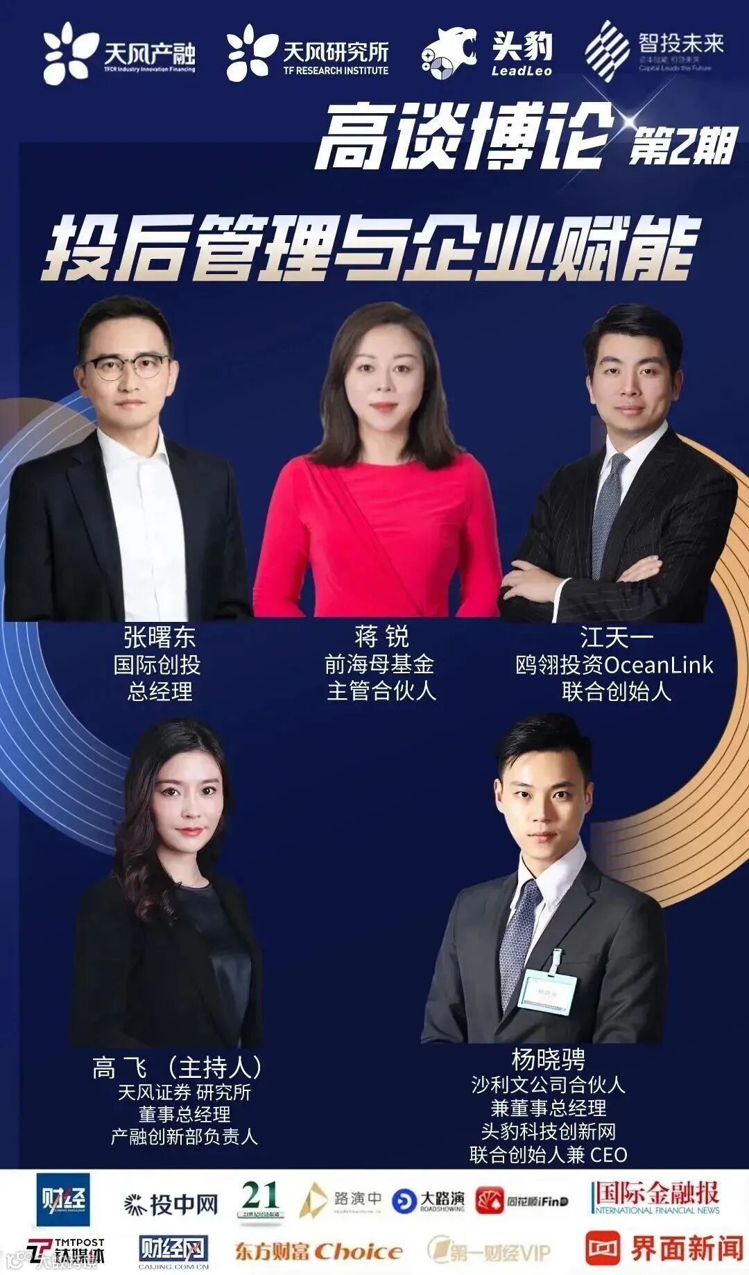 本次线上论坛以“投后管理与企业赋能”为主题,首先,天风证券研究所董事总经理、天风产融创新部负责人高飞为观众们介绍了本次活动的议题: