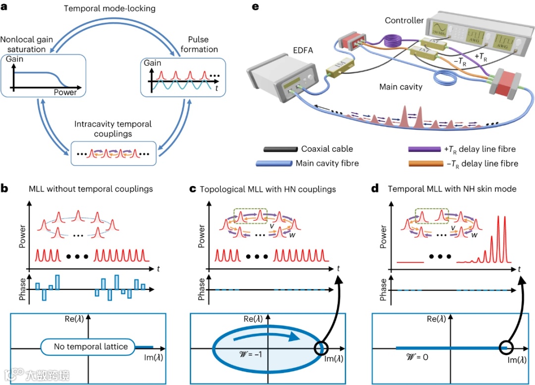 近日,加州理工学院应用物理系的Alireza Marandi团队从理论上提出并实验实现了一种拓扑时域锁模激光器。他们在激光腔中演示了非线性驱动的非厄米趋肤效应,并观察了激光对无序所引起的局域的鲁棒性。他们的实验展示了以前光子学实验无法实现的点带隙拓扑物理,并且提出了锁模激光器在传感、光学计算和鲁棒的拓扑频率梳方面的潜在应用。这项工作中采用的实验架构还为研究其他锁模光子源中的拓扑提供了一个模板,包括耗散孤子和同步泵浦光参量振荡器。相关内容发表于《Nature Physics》上。(张甜)