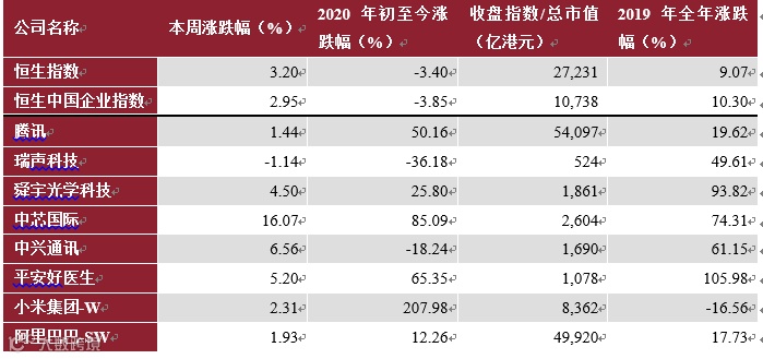 注:阿里巴巴-SW于2019年11月首发上市,2019全年涨跌幅以上市首日发行价为基准
