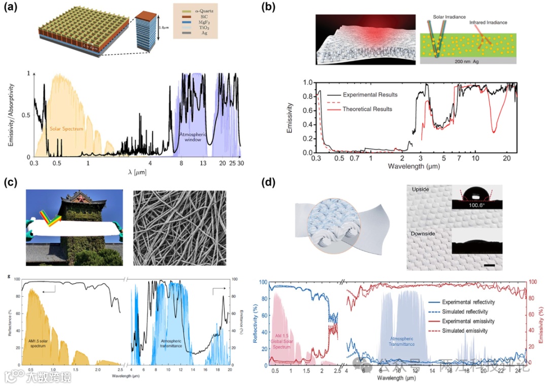 图8 辐射制冷技术:通过超纤维、超材料织物等复合超材料设计可实现有效的辐射制冷。