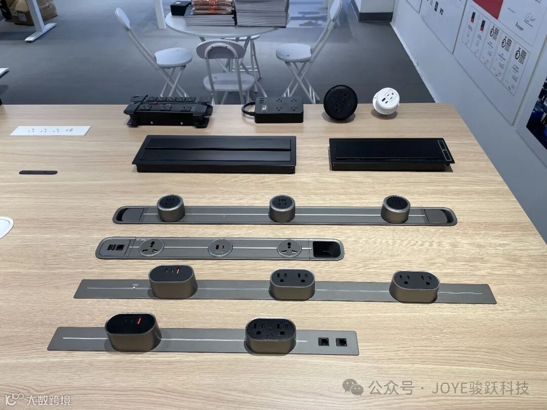 骏跃此次参展带来了多款独具特色的办公家具配件,其中包括备受期待的小白安全插座、UP系列插座、翻盖线盖系列以及专为现代办公打造的电力轨道插座等产品。这些产品的推出,不仅丰富了骏跃的产品线,更为现代办公空间提供了更加便捷、高效、安全的解决方案。