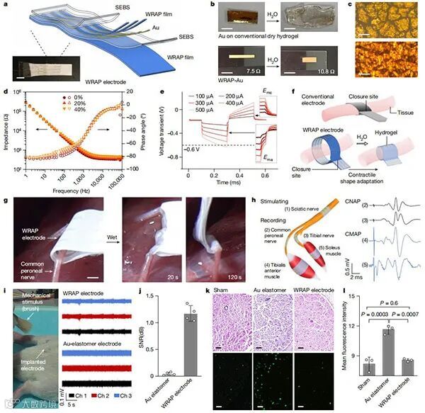 图3. 水响应形状自适应电极阵列作为可植入的刺激和记录电极