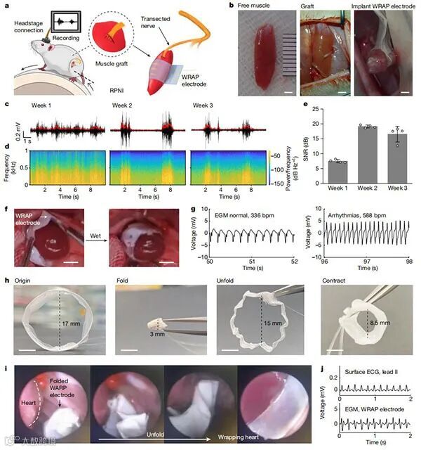 图4. WRAP电极用于RPNI、心外膜记录和微创植入