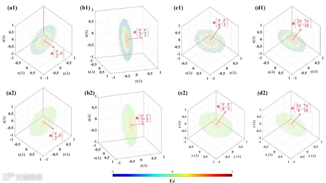 图4 紧聚焦光场拓扑结构及指向的综合调控