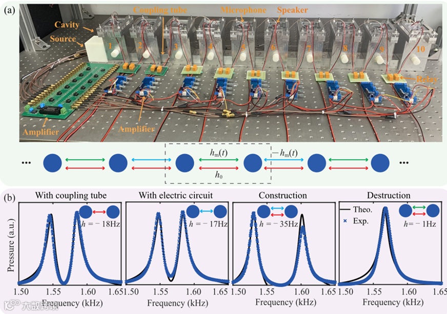 最近,南京大学梁彬、杨京、程建春教授和华中科技大学祝雪丰教授联合团队突破了静态波导系统的局限性,设计了一种时变Su-Schrieffer-Heeger模型,并在一维声学晶格中采用电路驱动的动态耦合来实现。在中等调制频率下,成功激发了局部边沿模式,即Floquet π模式。与静态波导系统中对应模式的不同之处在于,该系统中具有实时调制功能的π模式是实际带隙中相邻Floquet谐波的混合。因此,通过选择π间隙中的频率,可以稳定地激励π模式。利用Floquet理论,研究团队计算了系统的准能带,阐述了能带简并机理及相关的拓扑相变。通过实验证明了当系统同时处于低调制和高调制频率状态时,π模式不存在。该项工作为研究各种时间系统的内在特征铺平了道路,并可能引发拓扑系统中其他有趣的发现,例如高阶时间Floquet拓扑绝缘体。相关研究已发表在《Physical Review B》上。(金梦成)