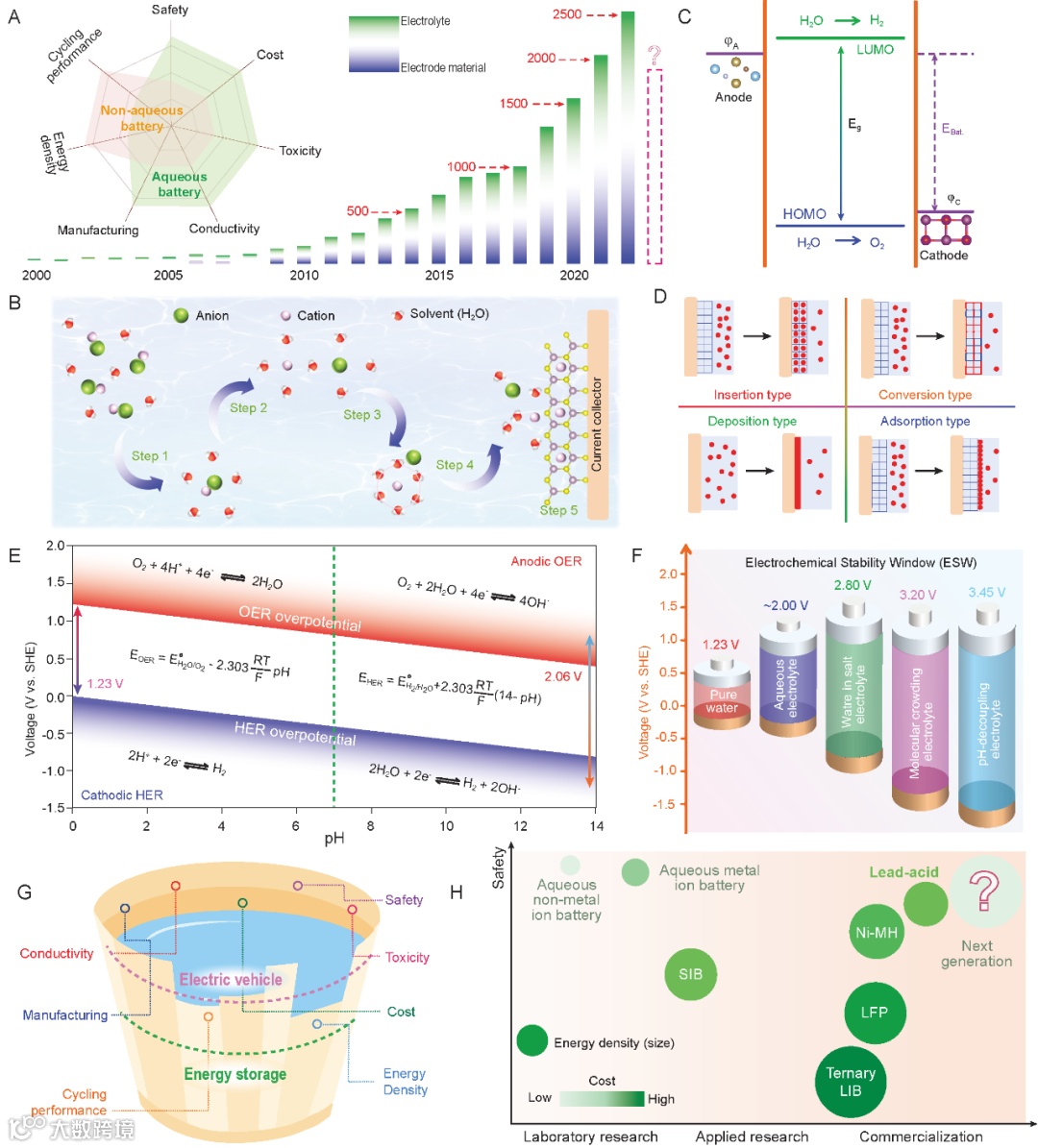 水系电池因其低成本、高电导率、不易燃等优点,已逐步进入储能系统应用阶段。然而,水系电池内部的电化学反应是一个复杂的多步骤过程,电解液和电极材料是决定水系电池电化学性能的关键因素。