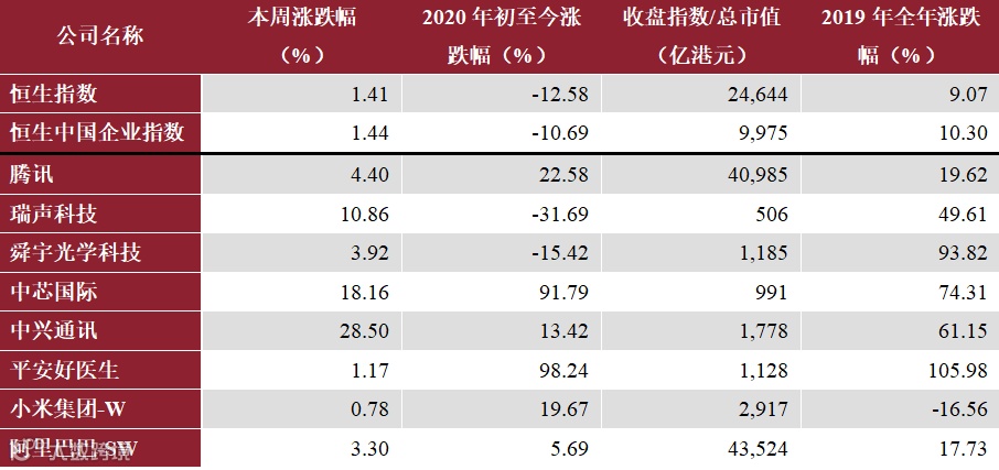 注:阿里巴巴-SW于2019年11月首发上市,2019全年涨跌幅以上市首日发行价为基准