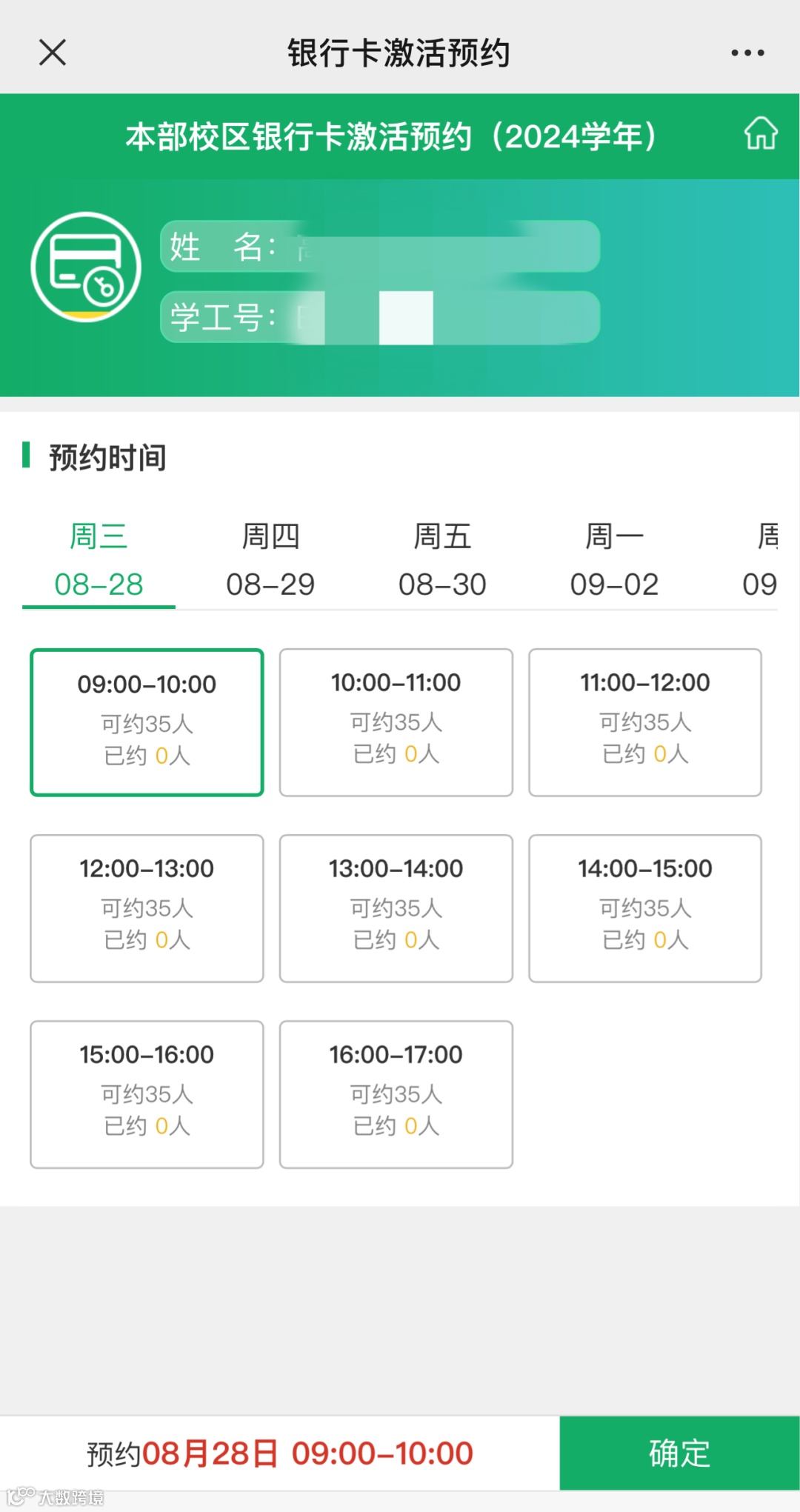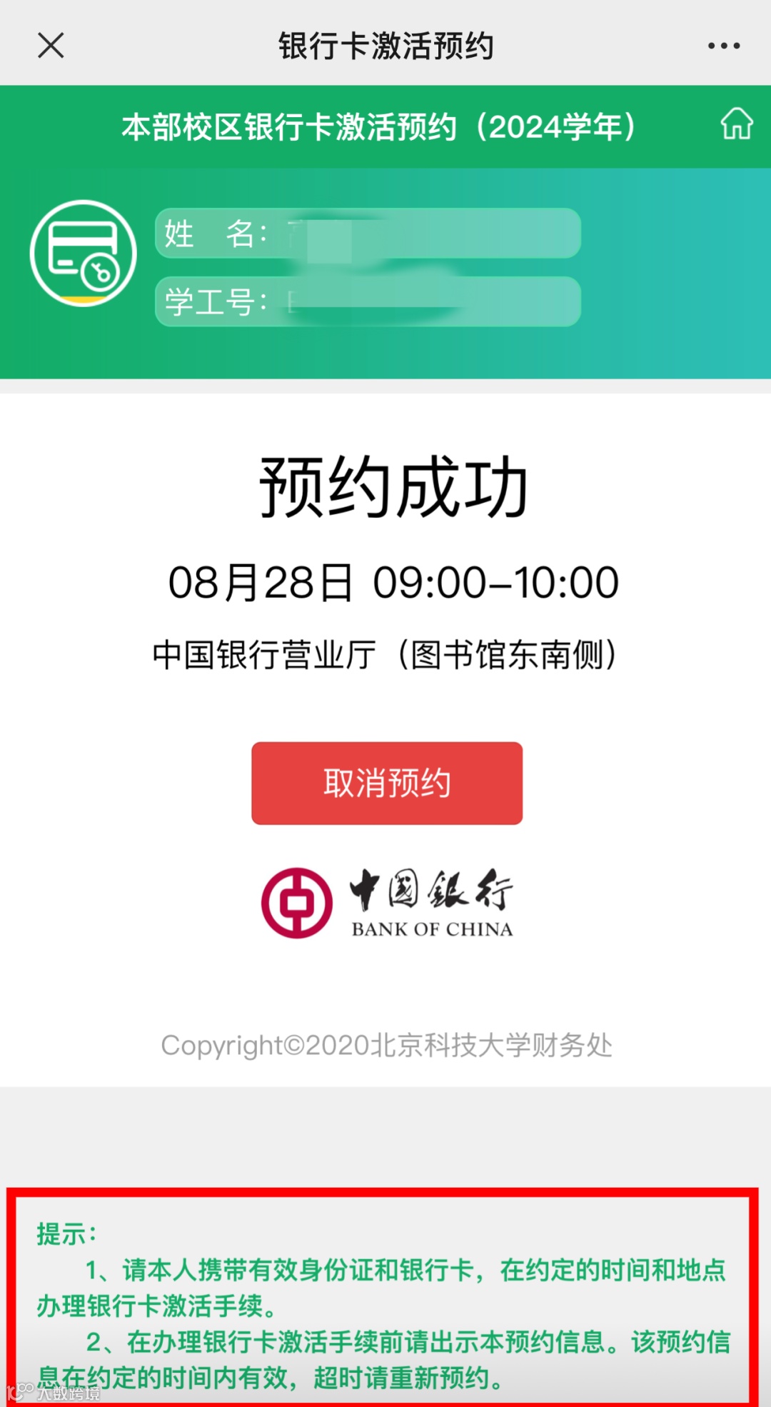 3、由于学期初银行卡激活人数较多,在9月30日之前激活点只接待预约的用户办理银行卡激活手续。