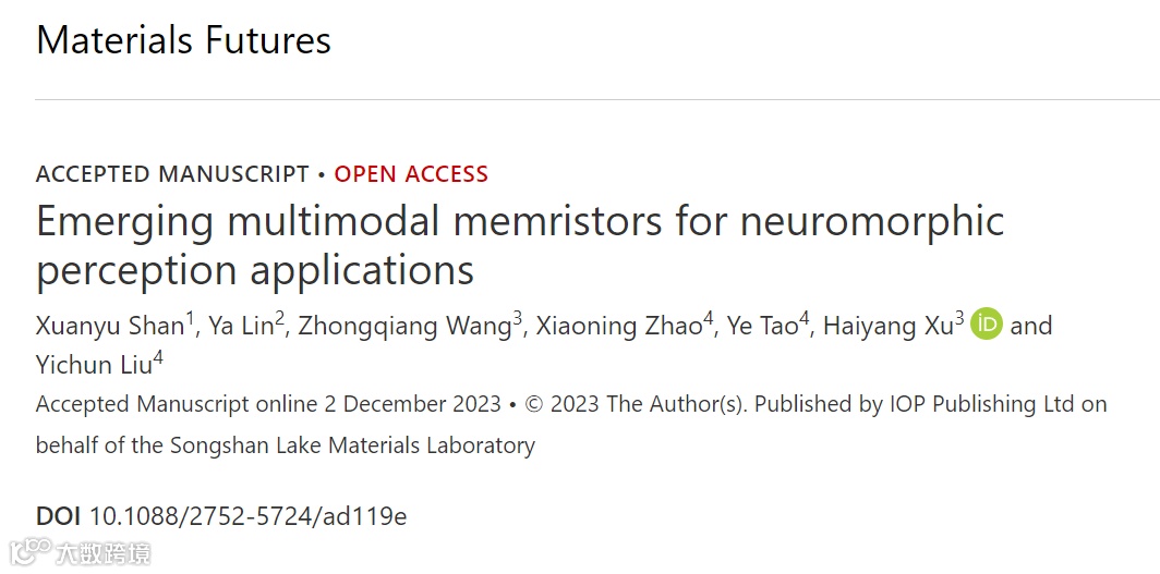 整合不同感官信息(如视觉,触觉等)对于生物体执行决策、学习记忆等行为功能至关重要。基于电子器件构筑人工多模态感知系统对于实现高效人机交互具有重要意义。在传统感知系统中,多种类型传感器从周围环境接收不同的感官信息,这些原始的信息将首先存储在存储单元,接着在处理单元中进行后续的分析和处理。这一传统系统中涉及到的模数转换(ADC)及数据传输过程会不可避免地造成海量的冗余数据及超高能耗,严重影响系统整体的效率。因此,发展可实现多模式信息整合的器件单元对于实现高能效多模式感知至关重要。忆阻器作为新兴的两端无源器件由于其与生物突触在功能结构方面的相似性,被认为是发展神经形态感知系统的理想纳米智能器件。目前忆阻器能够实现光、压力、声音等多维度信号的感应,结合新兴感存算一体化架构的设计,为高效多模式感知提供了良好硬件基础。