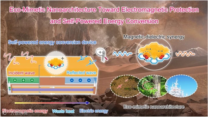 中文题目:氧化分子层沉积剪裁仿生态纳米结构,以操纵电磁衰减和自供电能量转换