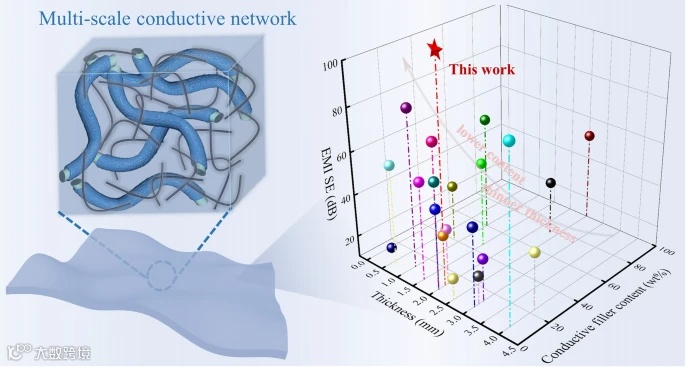 中文题目:具有多尺度导电网络的柔性聚二甲基硅氧烷复合材料实现超强电磁干扰防护