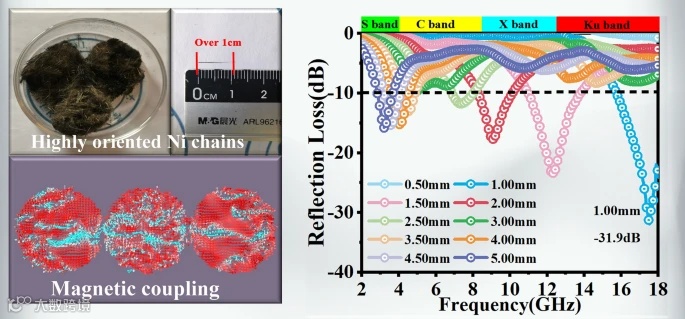 中文题目:宏观电磁协同网络增强型MXene/Ni链气凝胶基微波吸波材料