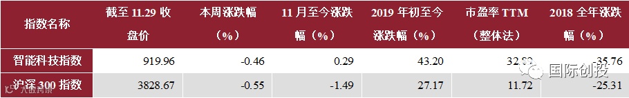 2018年初以来,国际创投·智能科技指数与沪深300指数的走势对比如下所示: