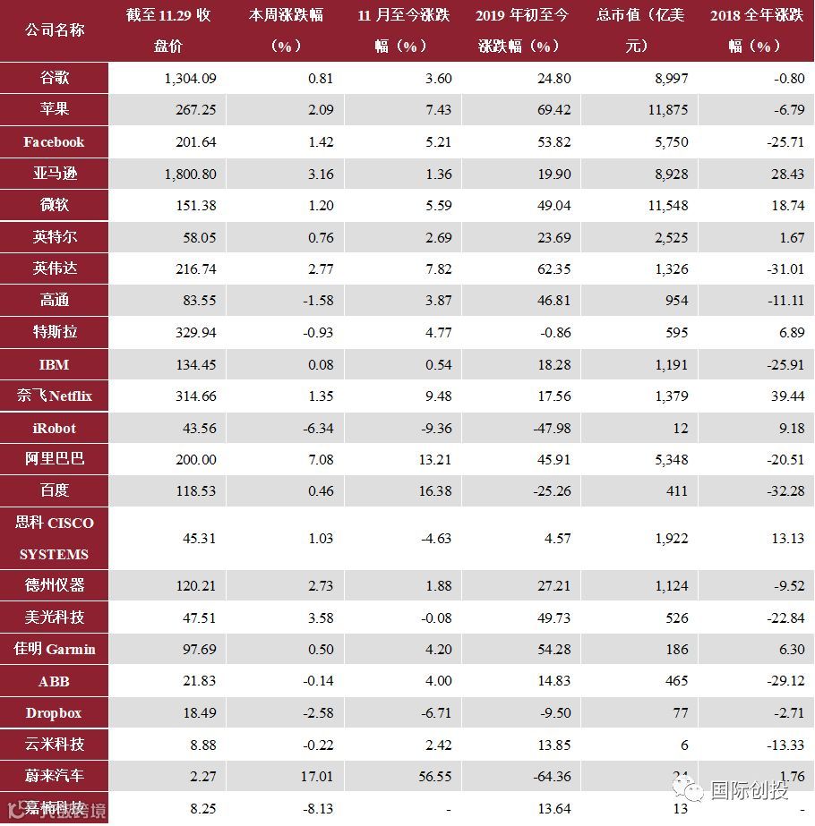 对于跨市场相关上市公司,我们分别从美股和港股市场,暂时选择了最具代表性的23只美股及11只港股,追踪其二级市场行情动态。