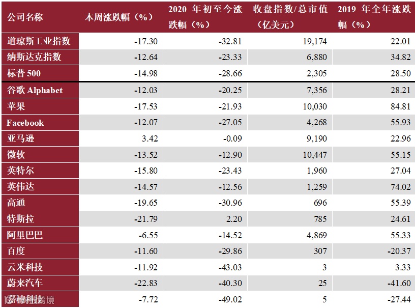 同时,我们分别追踪跨市场指数和个股行情动态,对于上市公司,暂时选择了最具代表性的14只美股及8只港股。