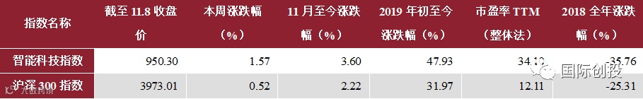 2018年初以来,国际创投·智能科技指数与沪深300指数的走势对比如下所示: