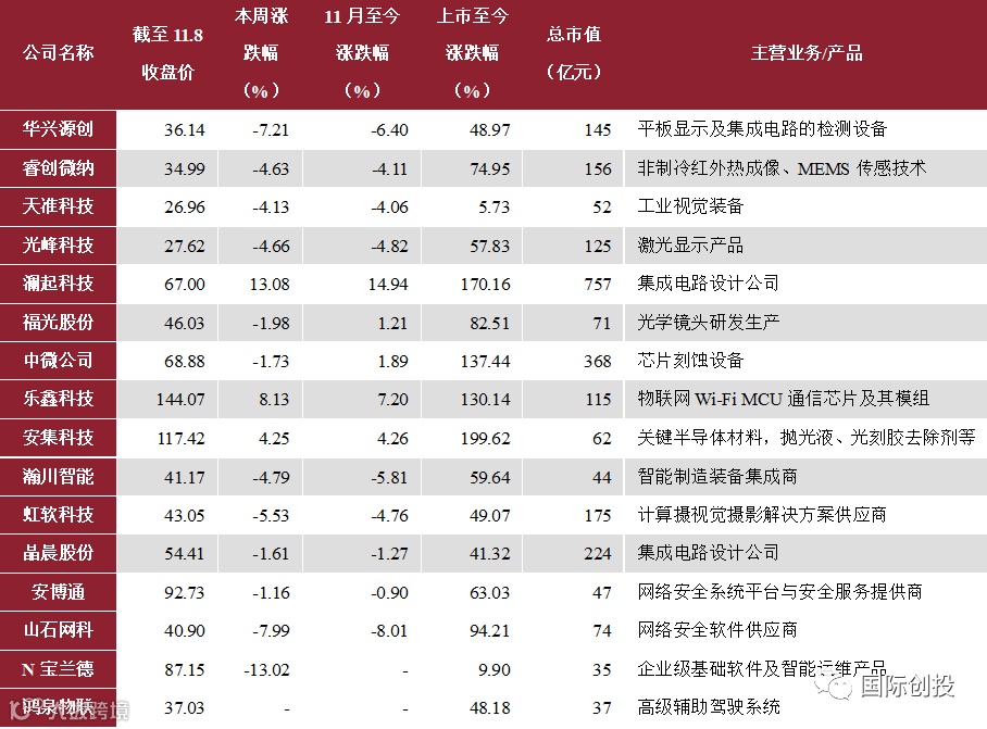 注:上市至今涨跌幅以上市首日发行价为基准;N宝兰德于11月1日首发上市;鸿泉物联于11月6日首发上市