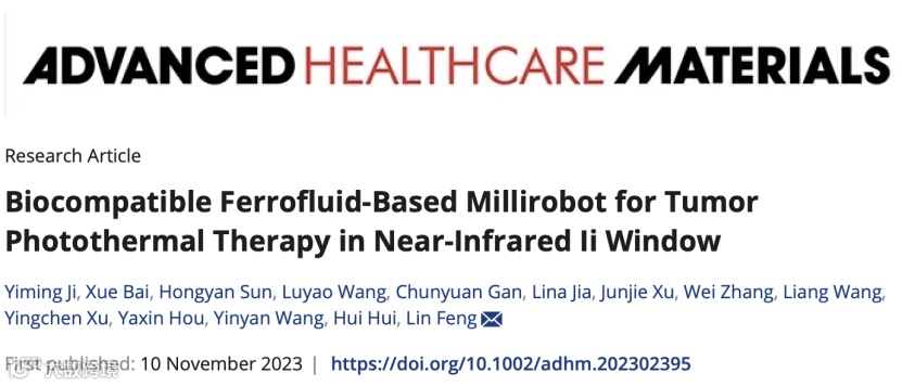 此外,该研究使用的控制系统能够在复杂的生物介质中实现对机器人的三维磁驱动。利用1064纳米的光热转换特性,磁流体机器人可以在体外杀死肿瘤细胞,在体内抑制肿瘤体积、破坏肿瘤间质、增加肿瘤细胞凋亡、抑制肿瘤细胞增殖。这项研究为基于磁流体的毫米机器人在体内实现靶向治疗提供了参考。