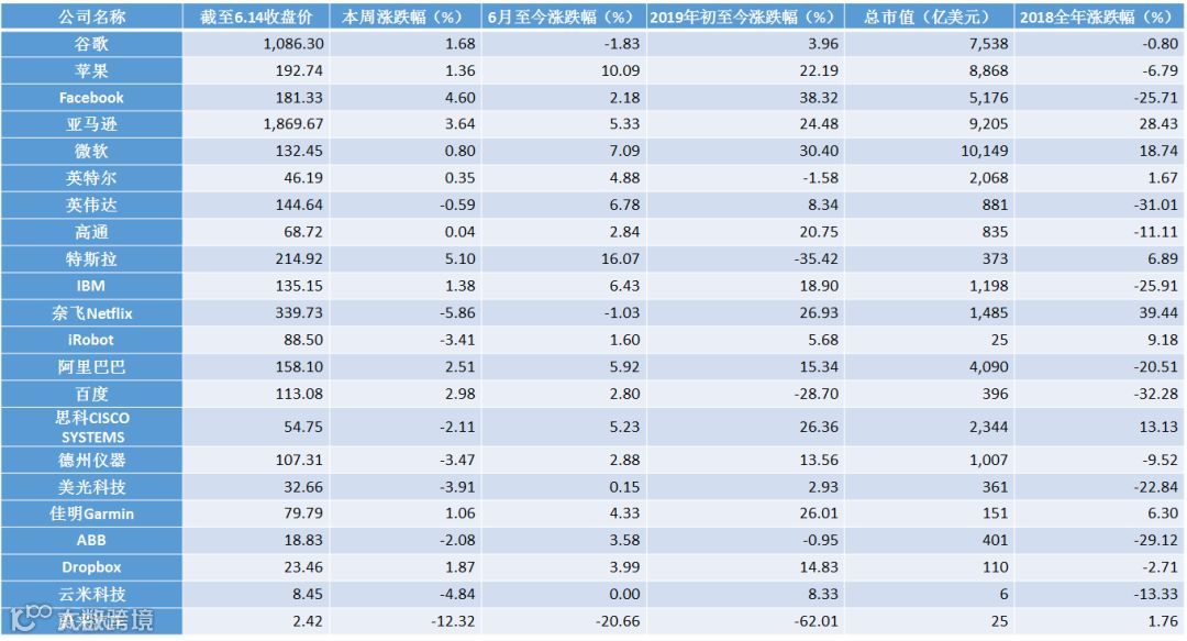 美股具体表现列示如下: