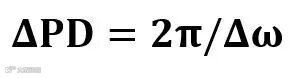 其色散补偿要求(Group Delay, GD 群延时)会随着口径和NA的变大而变大,而在传统宽带消色差超透镜(Broadband achromatic metalens, BAML)中,大色散要求必然意味着meta-atoms的高厚度要求。结合时间带宽积的约束下,这种色散要求导致的meta-atom的高度要求可以写成公式