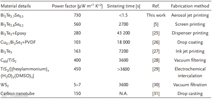 表1. 柔性 n 型 TE 材料室温 TE 性能的比较。