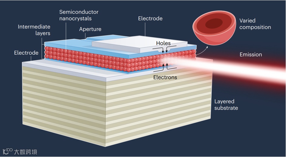 图1:化学合成的半导体纳米晶体(胶体量子点)已被证明可以通过电泵浦产生放大自发辐射
