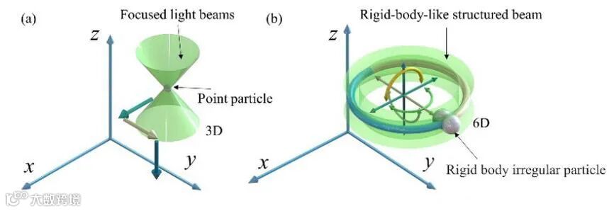 最近,具有更大扩展自由度和更高维度的结构光由于其先进的应用而引起了越来越多的关注,这在具有更多功能和更高精度的光捕获或光镊技术中具有重要意义。然而,利用目前的光镊技术来进行超越三维的操纵仍然很困难,这种限制源于传统的光镊操纵理念,即被捕获粒子的运动在三维空间中表现为点运动。这种理念没有涵盖完整的运动模式,这也是为什么机械领域需要开发六轴机械臂和多轴无人机的原因。