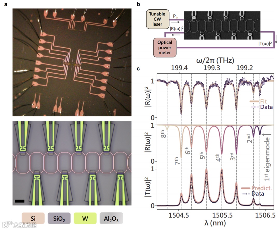 在光学中设计量子系统的一个解决方案是通过光子耦合腔阵列(CCA)实现,其中腔之间的耦合为光子的移动提供了一个潜在的地图,并且长时间的强空间限制光可以通过与各种激子材料的耦合来获得局部非线性。目前已经有一些实验展示了使用光学CCA的各种物理现象,但这些CCA都不是可编程的,并且无法访问哈密顿量的整个量子化特征能谱。虽然仔细选择操作系统可以产生使用光子学可扩展到多个站点的路径,但在光学系统中,由于涉及极小的物理尺寸,实现特征能谱的可编程性和可测量性还是非常具有挑战性的。