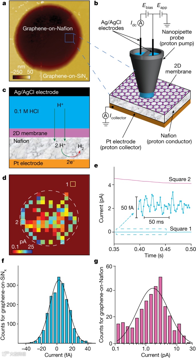 图1. 通过2D晶体的质子电流的纳米级可视化