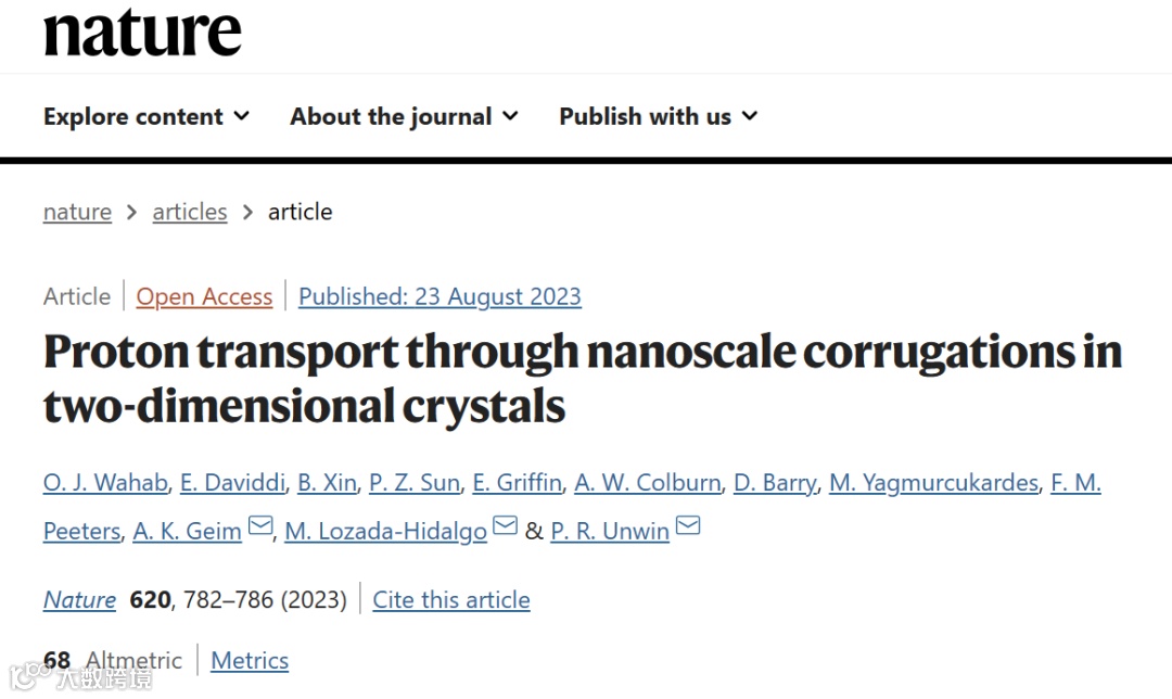 近日,英国华威大学P. R. Unwin教授和曼彻斯特大学M. Lozada-Hidalgo教授、A. K. Geim教授(诺奖得主、石墨烯之父)课题组合作研究,利用高分辨扫描电化学池显微镜(SECCM)发现虽然通过机械剥离的单层石墨烯和六方氮化硼的质子渗透不能归因于任何结构缺陷,但二维膜的纳米波纹极大地促进了质子传输。相关论文以题为“ Proton transport through nanoscale corrugations in two-dimensional crystals ” 的论文发表在 Nature 上。第一作者为Oluwasegun Wahab,E. Daviddi 为共同一作。