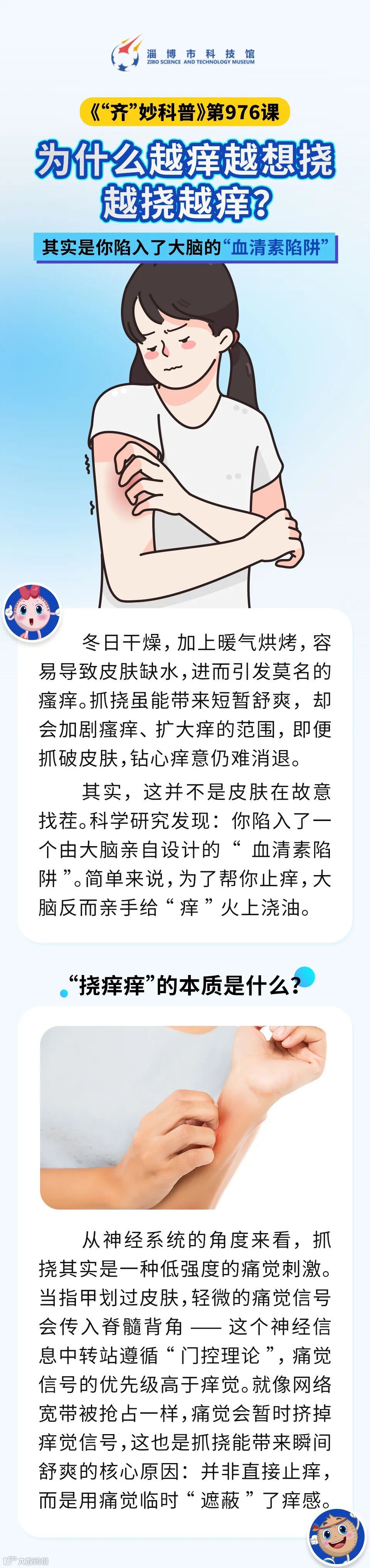 【可以听的科学课】《“齐”妙科普》第976课  为什么越痒越想挠,越挠越痒?其实是你陷入了大脑的“血清素陷阱” 淄博市科技馆