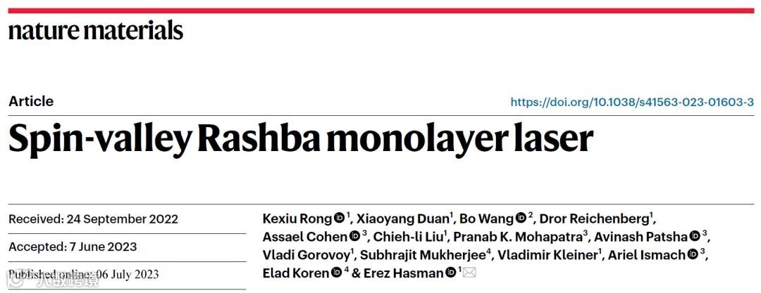 [2] Rong, K. et al. Spin-valley Rashba monolayer laser. Nature Materials (2023). https://doi.org/10.1038/s41563-023-01603-3.