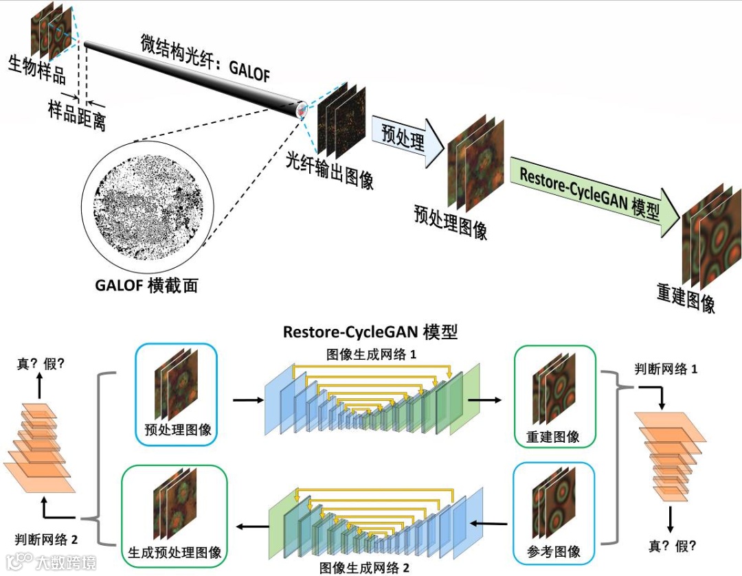 方案分别在深度学习算法和光纤成像系统两个方向上做了创新。在算法方面,新的方案基于非监督学习的循环生成对抗网络(Cyle