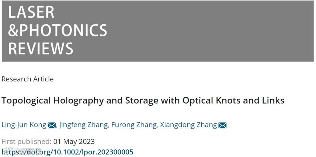 近日,北京理工大学物理学院张向东教授课题组基于光学纽结结构,实现了拓扑全息与存储。相关成果以“Topological holography and storage with optical knots and links”为题发表在Laser & Photonics Reviews 期刊[Laser Photonics Rev. 2023, 2300005]上。该研究工作得到了国家自然科学基金委的大力支持。北京理工大学物理学院孔令军研究员、张景风博士生为该论文的共同第一作者,北京理工大学物理学院孔令军研究员、张向东教授为论文共同通讯作者,北京理工大学物理学院张福荣博士生也为该工作做出了重要贡献。